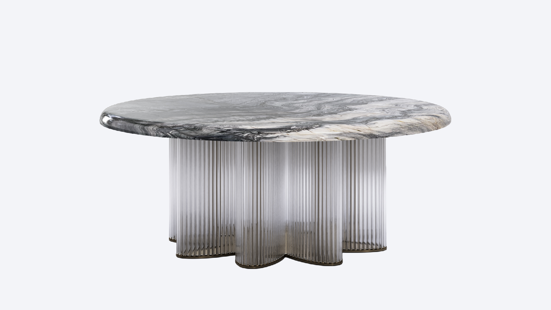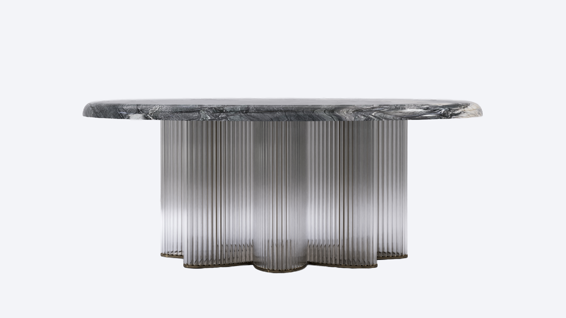 Crafted in soft grey Fiore di Pesco marble, this console reveals a poetic balance of delicacy and strength. Gentle veining flows across its matte surface, evoking the calm refinement of natural stone. The base, formed from artisanal blown-glass rods hand-made in Murano, echoes the grace of Venetian craftsmanship. United in form and spirit, marble and glass converse in quiet harmony—an elegant testament to material purity and timeless artistry.